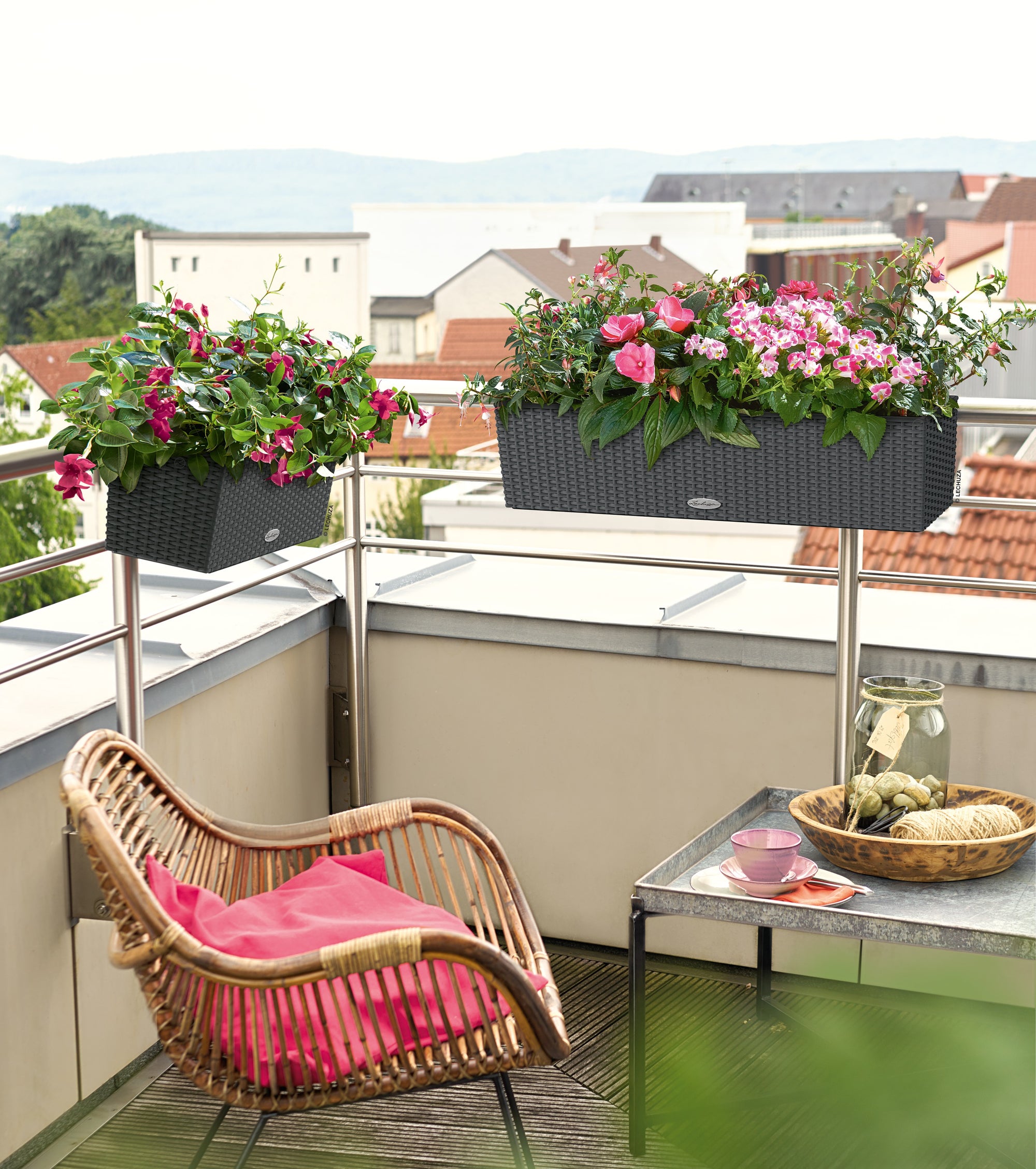 Con il supporto per cassetta da balcone LECHUZA, è possibile montare facilmente e senza complicazioni i vostri vasi BALCONERA sulla ringhiera del balcone o sulla parete.